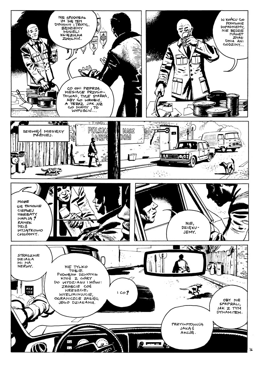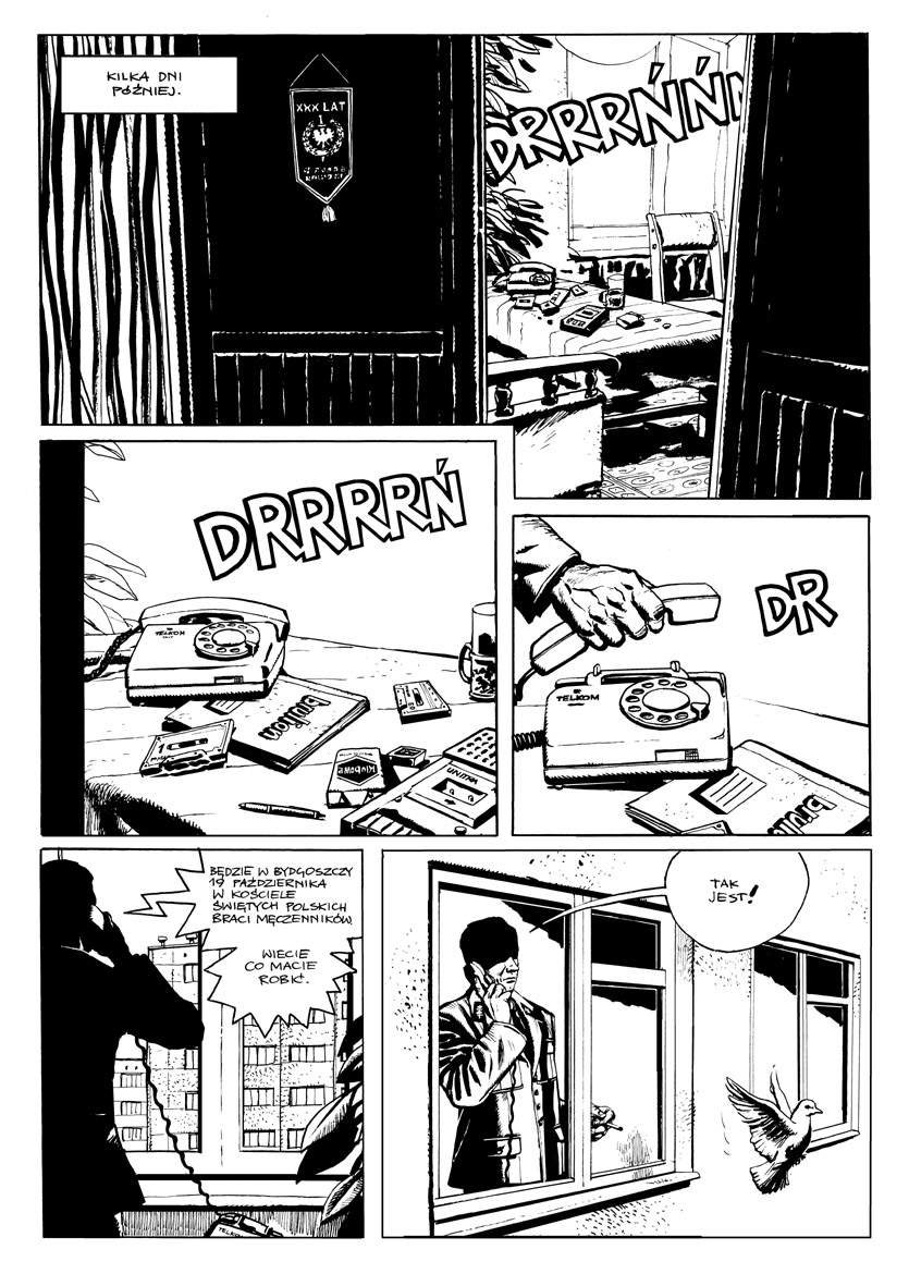 Treść: Komiks przedstawia ostatni rok życia kapelana ,,Solidarności”, począwszy od 12 grudnia 1983 r. aż do porwania (19 października 1984 r.) i tragicznej śmierci z rąk funkcjonariuszy SB. Pokazane są szykany, jakim był poddawany duchowny, rewizje, przesłuchania, prowokacja i aresztowanie oraz wcześniejsze próby zamachu na księdza. Komiks ma charakter paradokumentalny, mocno opiera się na faktach, choć część opisanych w nim sytuacji, głównie dialogi, ma charakter hipotetyczny, choć bardzo prawdopodobne, że tak właśnie było w rzeczywistości.